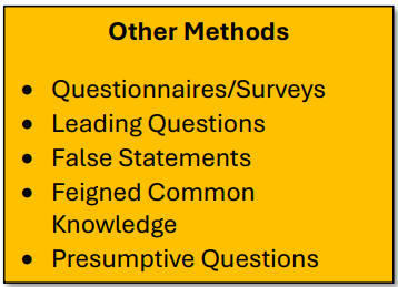 There are dozens of techniques to disguise elicitation in business conversations. They work by preying on human nature to be helpful, polite, appear competent, or authoritative.